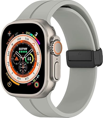 Generic - Compatible with Apple Watch Band 42mm 44mm 49mm 45mm Silicone + Magnetic D Clasp Sport Replacement Wristband for iWatch Series 8/Ultra/7/SE/6/5/4/3/2/1 (Grey)