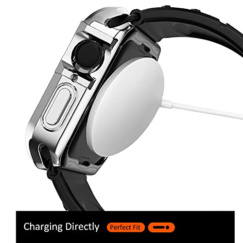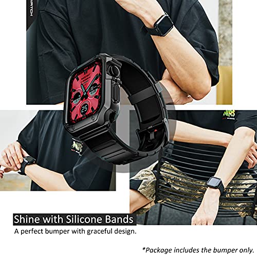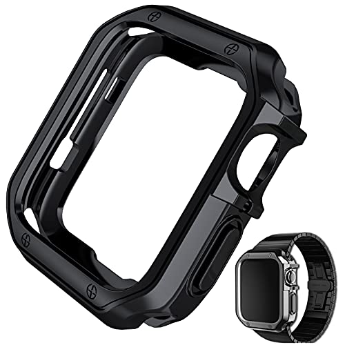 Kuaguozhe - Compatible with Apple Watch Bumper Case 44mm, Beautiful Protective Cover Combination with Stainless Steel & Silicone Band, Lightweight Shockproof TPU Protector for iWatch Series 6/5/4/SE, Black