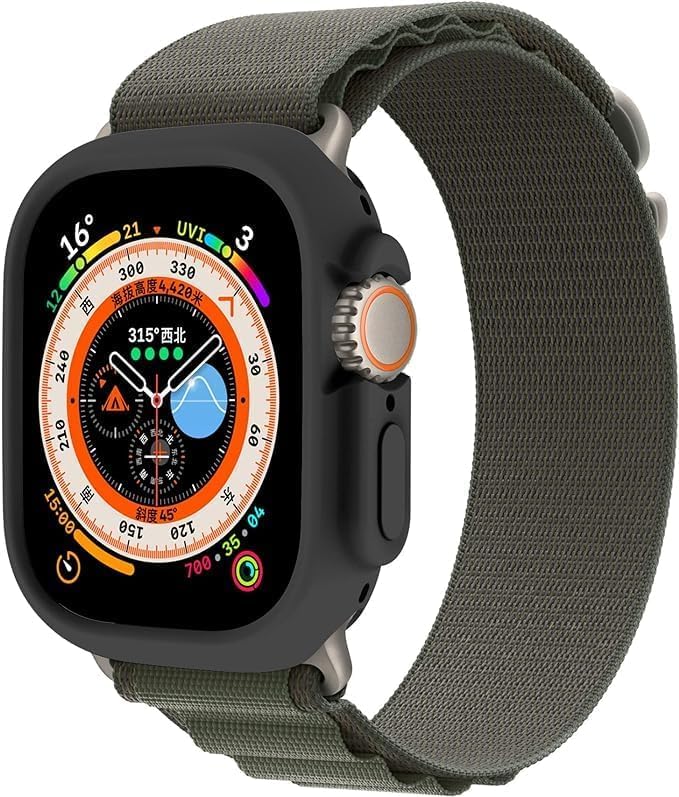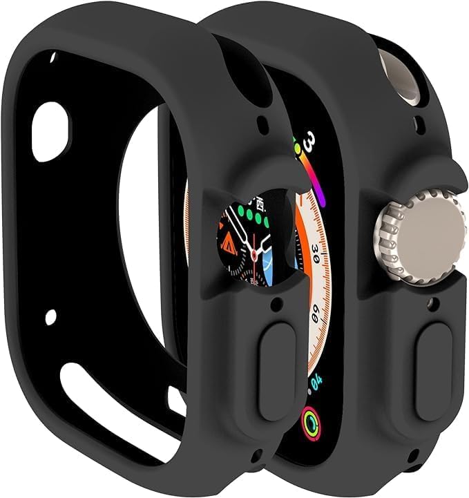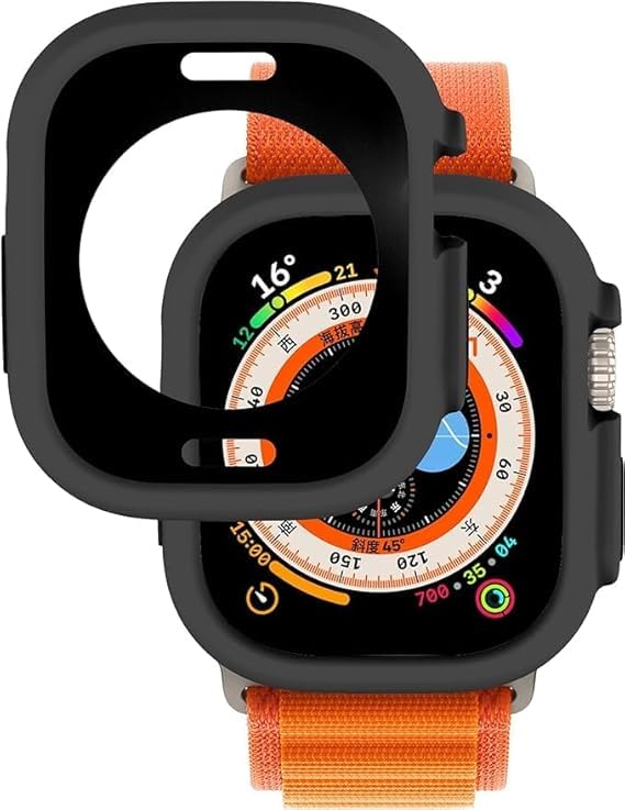 Generic - حافظة حماية متوافقة مع ساعة آبل الترا 49 ملم، حافظة حماية من السيليكون والبولي يوريثين الحراري مضادة للخدش والصدمات من جميع الجوانب، لون أسود
