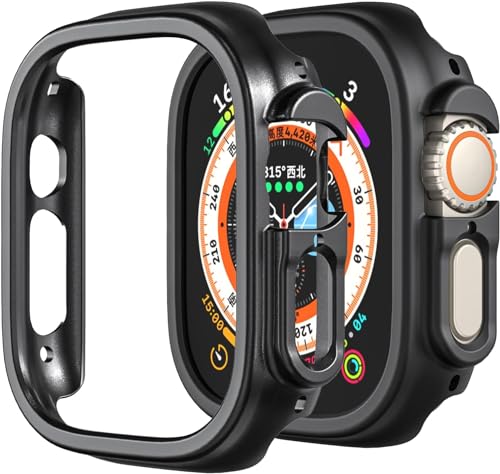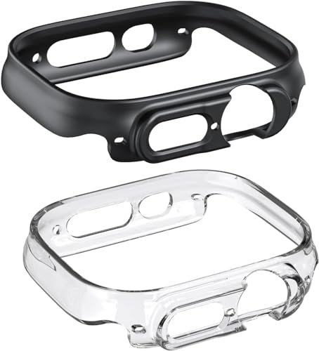 ELMO3EZZ - جراب حماية صلب من البولي كربونات مقاوم للصدمات جميع الجوانب المعز متوافق مع ساعة ابل الترا 49 ملم أسود + شفاف