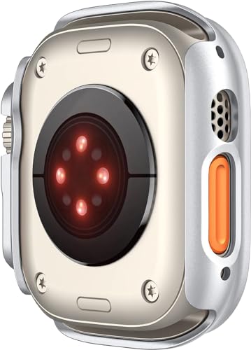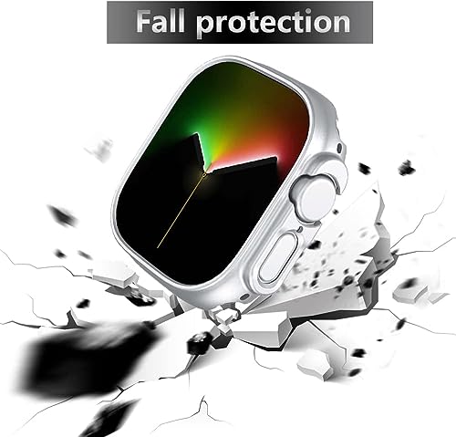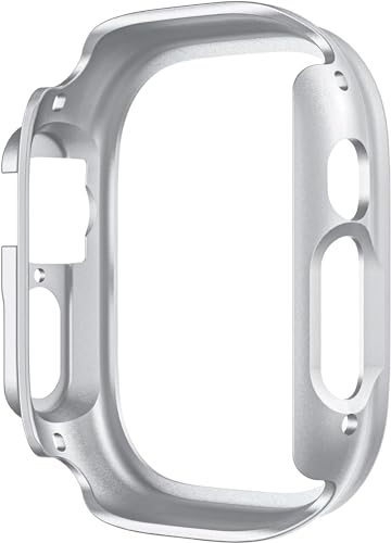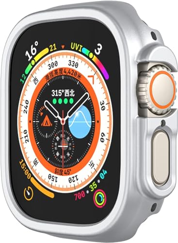 ELMO3EZZ - جراب حماية صلب مضاد ومقاوم للصدمات مصنوع من بولي كربونات ومزود بمصد صلب لحماية الساعة من جميع الجوانب، متوافق مع ساعة ابل ووتش الترا 49 ملم الذكية، فضي