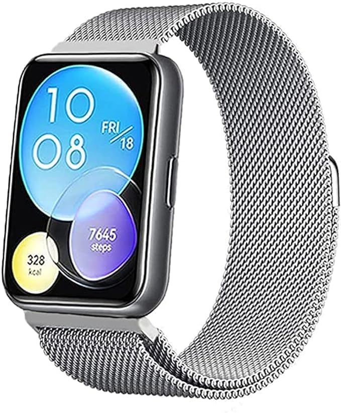 Generic - سوار ساعة بديل ستانلس ستيل عصري وأنيق بتصميم خفيف ومتين ومقاوم للتآكل متوافق مع هواوي فيت 2 - مغناطيس فضي ، للبالغين من الجنسين
