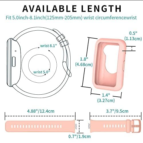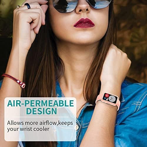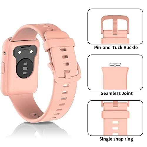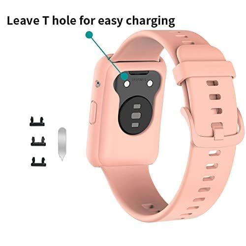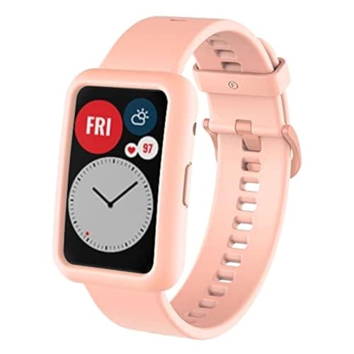 ELMO3EZZ - طقم سوار ساعة ذكية سيليكون متوافق مع هواوي فيت وجراب حماية معصم رياضي للرجال والنساء بديل مزود بمسامات للتهوية من المعز لون وردي