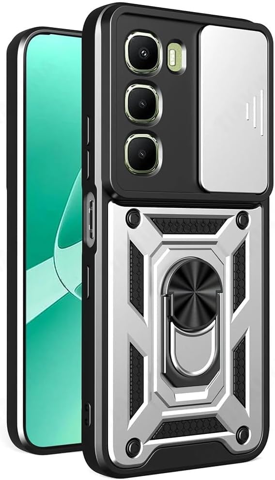 Generic - جراب كام شيلد مقاوم للصدمات والخدوش متوافق مع انفينكس هوت 60 برو بلس حماية كاملة بتصميم جذاب مع غطاء للكاميرا وحلقة معدنية متعددة الوظائف لهاتف infinix hot 60 pro plus cover (silver)
