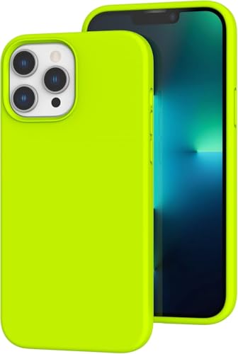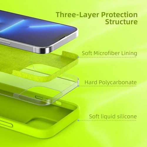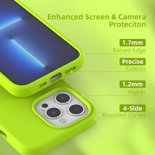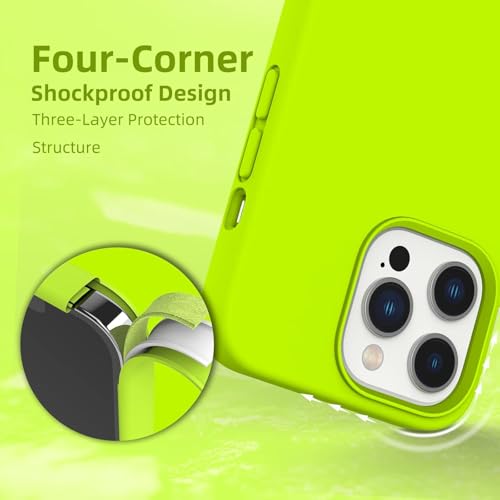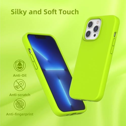 ELMO3EZZ - Compatible with iPhone 13 Pro Case, [Drop Protection] [Anti-Fingerprint] Shockproof Liquid Silicone Cover with Microfiber Lining Phone Case for iPhone 13 Pro 6.1" (2021), Fluorescent Green