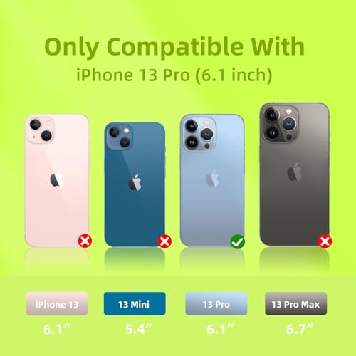 - [Compatible with iPhone 13 Pro 6.1 Inch 2021 5G, 3 Lens]: Precise cutouts for easy access to all ports. Don't interfere with microphone use and buttons sense sensitively. Slim enough to support Magsafe and wireless charging. WARM TIP: This phone case does NOT have a built-in magnet.
