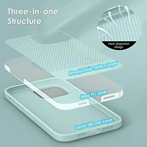 Generic - جراب حماية بملمس ناعم وهيكل نحيف من السيليكون السائل الممتاز مضاد للصدمات يحمي هيكل الموبايل بالكامل [حماية السقوط الدرجة العسكرية] لموبايل ايفون 14 برو ماكس 6.7 بوصة 2022 اخضر مينت