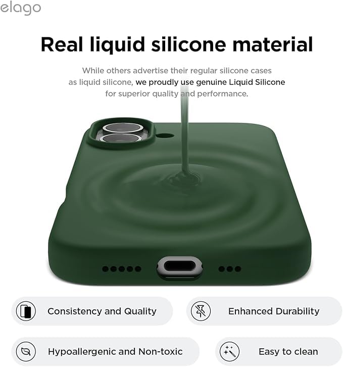 ELMO3EZZ - ELMO3EZZ Compatible with iPhone 16 Case, Premium Liquid Silicone Case, Full Body Protective Cover, Shockproof, Slim Phone Case, Anti-Scratch Soft Microfiber Lining, 6.1 inch (Alpine Green)