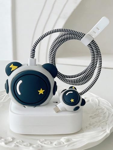 Generic - متوافق مع شاحن ايفون USB 20 واط 3 دي كرتوني مضحك علبة شحن كابل لايتنينج تصميم لطيف للرجال والنساء (خوذة فضائية رمادية)