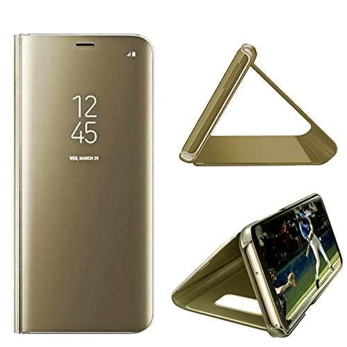 ELMO3EZZ - جراب حماية قابلة للطي من المعز متوافق مع اوبو A5 2020، جراب حماية قابل للطي بمرآة مطلية لموبايل اوبوA9 2020، ذهبي عاكس كيو اتش، مواد مختلطة