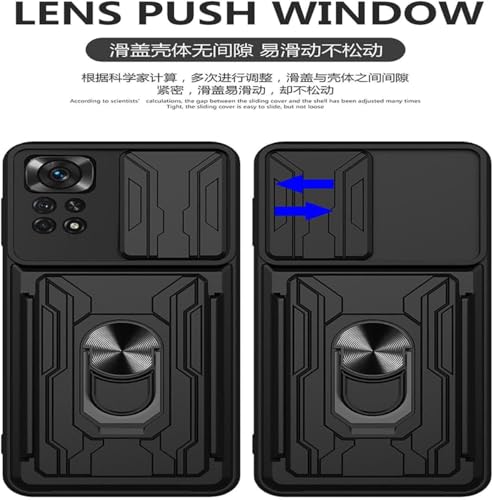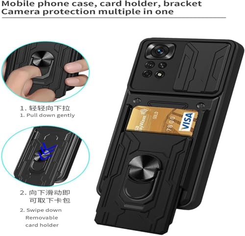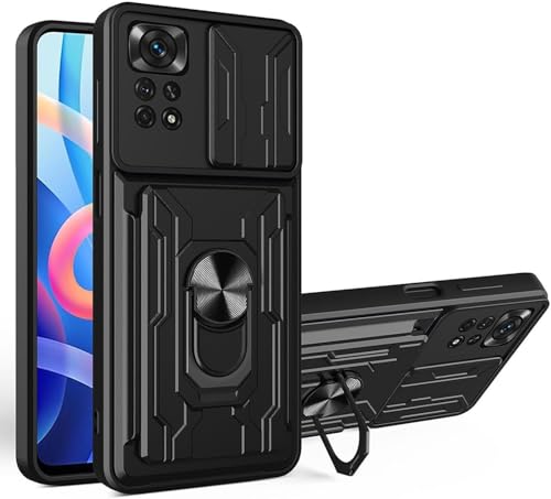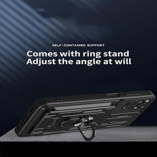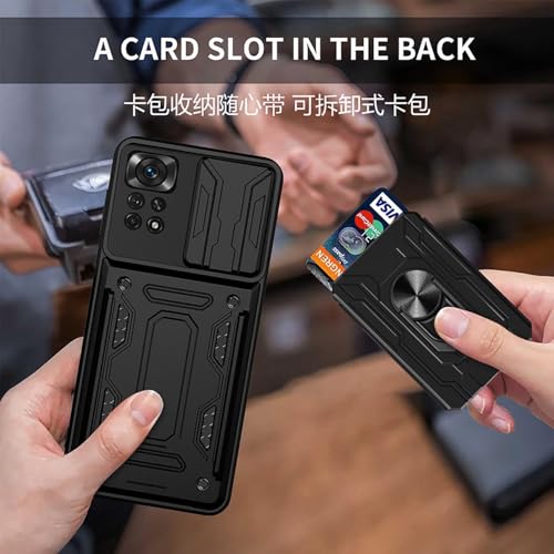 Generic - Compatible with Redmi Note 12 Pro 4G Case with Slide Camera Cover Removable Card Holder Built-in Kickstand Shockproof Hard Silicone Padded Cover - Black