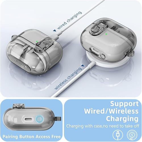 APLINHOP - Compatible with Samsung Galaxy Bud 3 Pro Case/Buds3 Case Cover Clear Lock Clip with Keychain, Transparent TPU Galaxy Buds Pro 3 Protective Cover Men Women with Carabiner, Clear Black