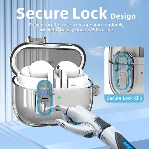 - 【Package Includes & Warranty】: APLINHOP are covered under a one-year limited warranty.If you have any problem, please feel free to contact us, we will reply email within 12 hours. Package Includes: 1 x SAMSUNG Galaxy Buds 3 / Buds 3 Pro Clear Case with Clip Lock + 1 x Keychain.