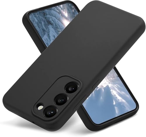 ELMO3EZZ - Compatible with Samsung Galaxy S23 Phone Case Liquid Silicone Grip, Cute Thin Slim Soft Rubber TPU Smooth Gel Cover for Women Girl Aesthetic Design, Matte Solid Protective (Black)