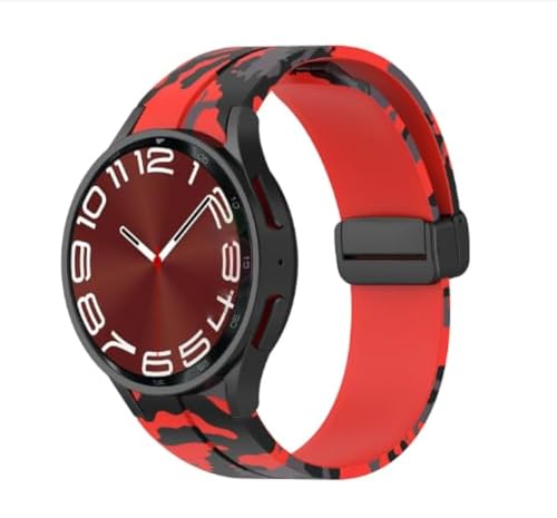 Generic - سوار ساعة رياضي من السيليكون بتصميم بدون فجوات بإغلاق مغناطيسي متوافق مع ساعة سامسونج جالاكسي 5 44 ملم و5 برو 45 ملم و4 كلاسيك 46/42 ملم، (أحمر ومموه)