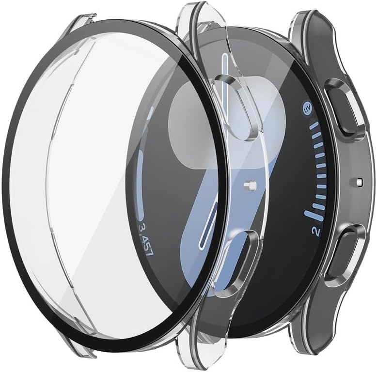 Generic - جراب حماية للشاشة من البولي كربونات الصلب والزجاج المقوى، جراب رفيع للغاية ومضاد للخدش ومضاد للانزلاق متوافق مع ساعة سامسونج جالاكسي 7 مقاس 44 ملم (شفاف)