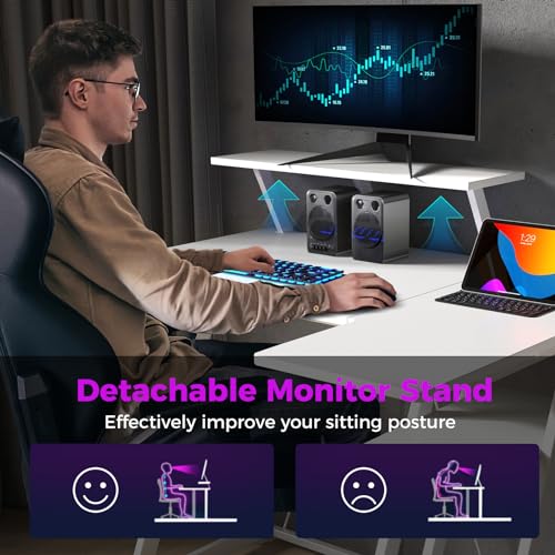 - Detachable Monitor Stand: This computer table comes with an extra monitor stand that raises your computer screen, which makes it possible to work or play without hunching over. In addition, the monitor stand is removable so you can easily customize your workspace.