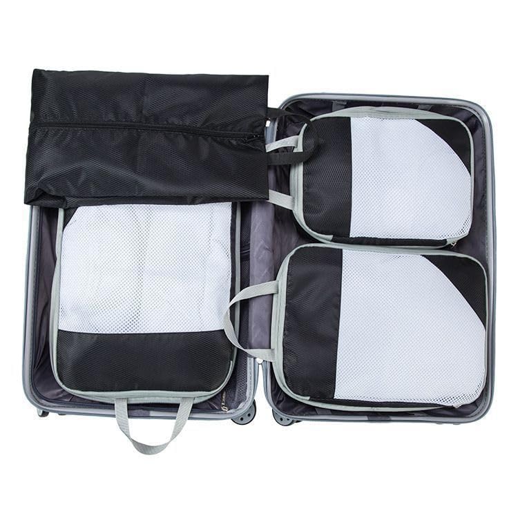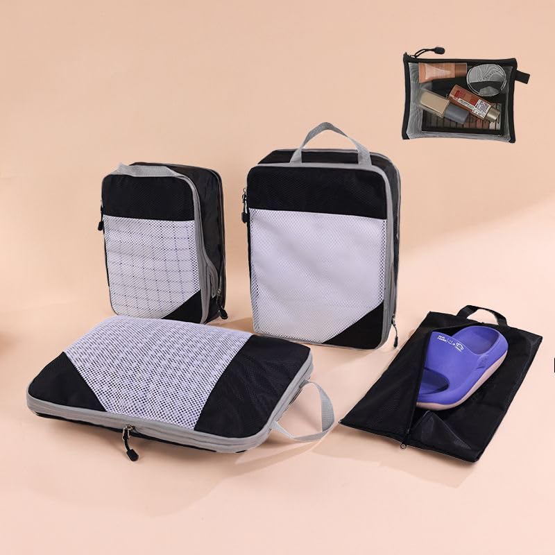 COMSURE - Travel and Business trip Mesh Packing Cubes Set, Organizer Bags with Handles, Compression Storage Pouches for Luggage (black)