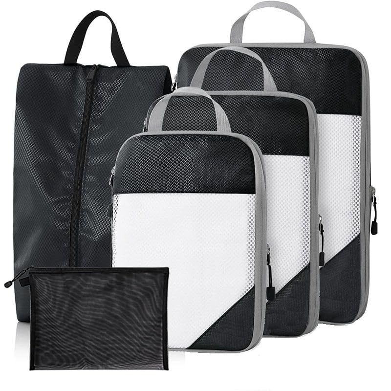- COMPLETE SET: This set includes four spacious cubes of varying sizes,a sock bag, a shoe bag, a flat pouch, and a drawstring pouch, for organized travel and business trips.Pack your personal stuff and separate your clothes from the rest with these organizer bags,if you have a baby or child, these bags are good choice to separate his or her clothes from adults, there is no doubt these bags are a must for your travelling, it will make packing so much easier and organized.