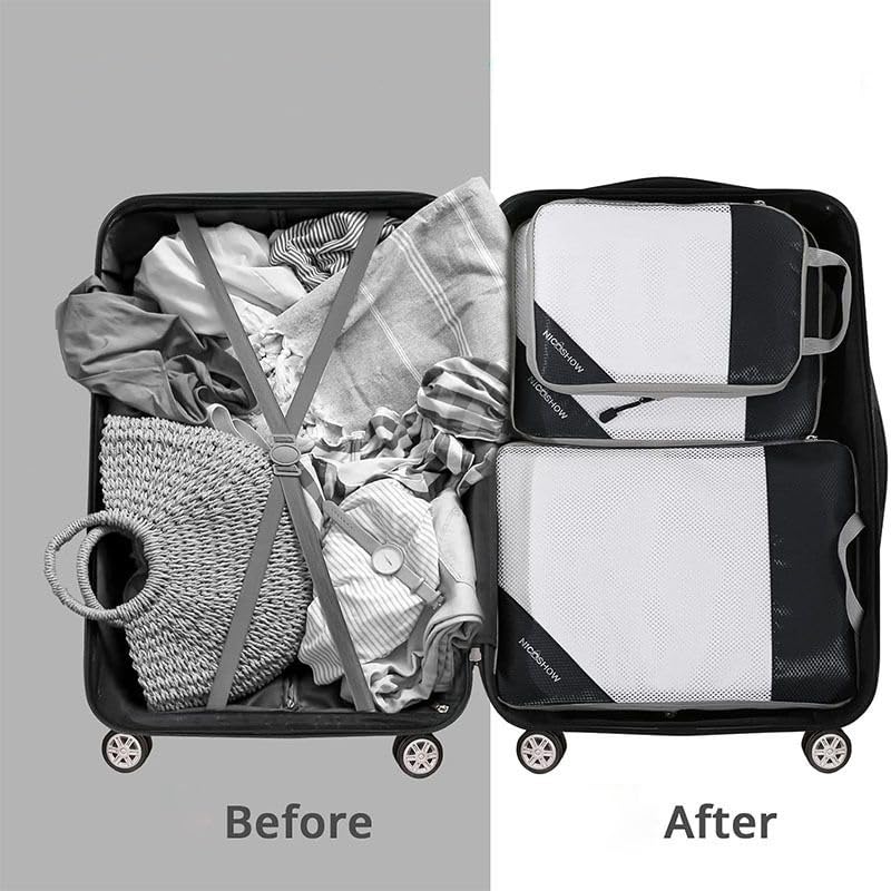 - MESH DESIGN: One side of the storage cubes is breathable mesh panels, which provide ventilation and visibility of contents, you can easily know exactly where everything is, no rummaging required at all, while high-quality zips ensure smooth operation and durability,elegant champagne look makes them classy.