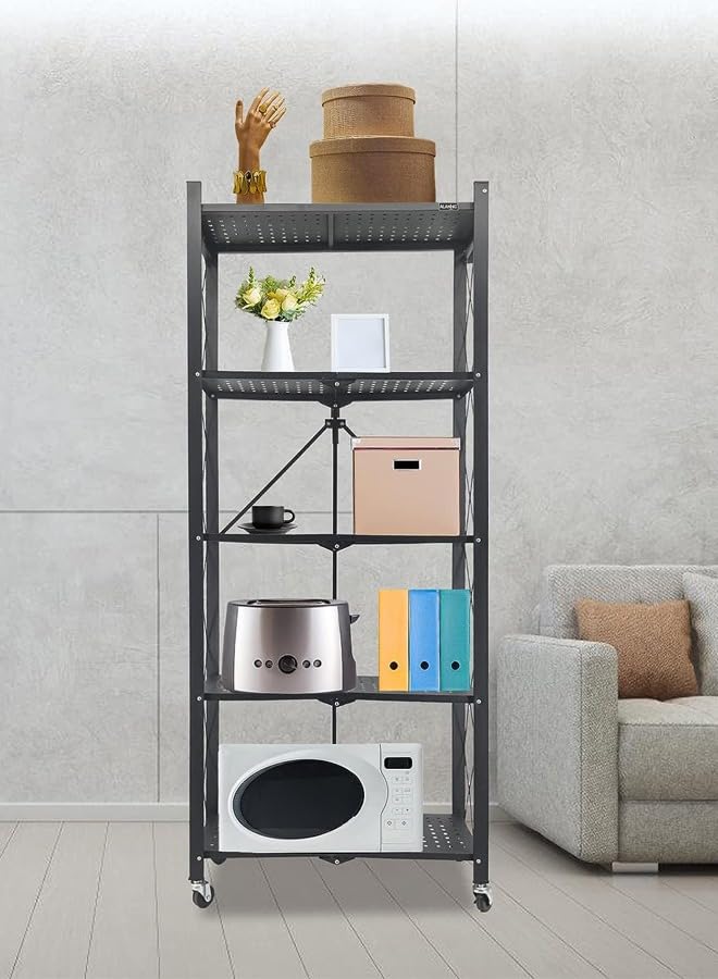 Generic - رفوف تخزين من 5 طبقات شديدة التحمل مع عجلات كونسبت هوم اسود معدن