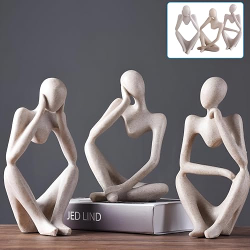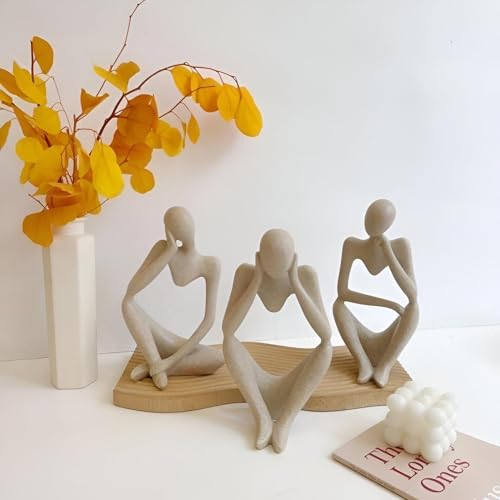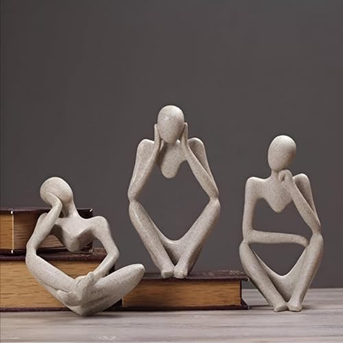Generic - Concrete Thinking Statue - Large 3-Piece Abstract Art Set for Office Decoration and Bookshelf Styling, Ideal for Home Use