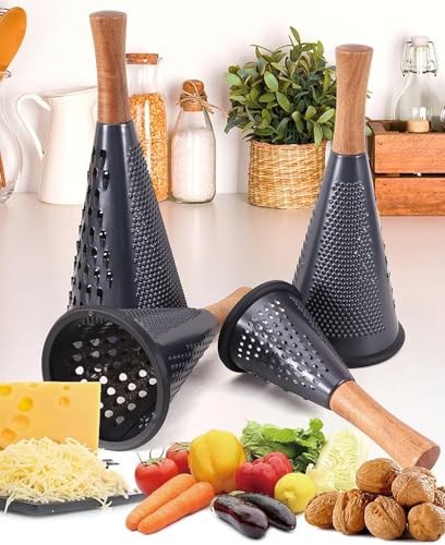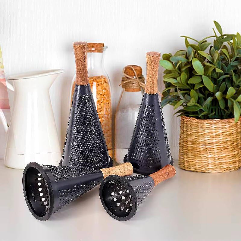 Generic - مبشرة جبن مخروطية الشكل مزودة بمقبض خشبي، مبشرة مطبخ متعددة الأغراض للخضروات والمكسرات، أسود