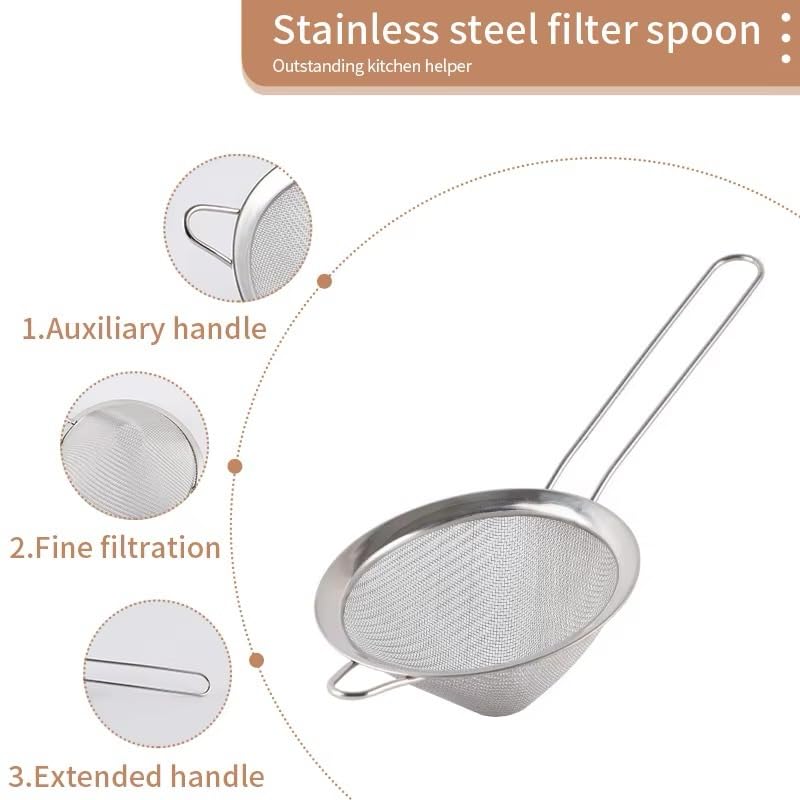Generic - conical fine-mesh strainer, Stainless Steel Fine Mesh Strainer with Extended Handle, Kitchen Filter Spoon, Silver (16 cm)