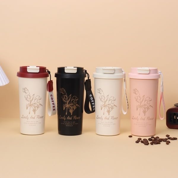 Generic - موقد كونوا استوديو: مج حراري روز - سعة 600 ملي - داخل ستانلس ستيل - فوهتين للشرب - من جينيريك