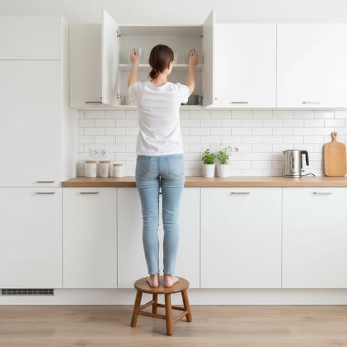 CONSDAN - كرسي جلوس مصنوع يدويًا من خشب البلوط الصلب، للّعب للأطفال والبالغين، كرسي منخفض دائري لتغيير الأحذية عند الأبواب، مقعد للراحة في غرفة المعيشة – اللون: شوكولاتة من كونسدان