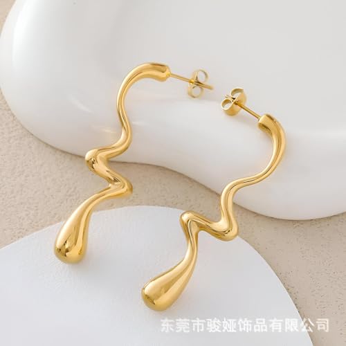 Generic - اقراط عصرية من الستانلس ستيل مطلية بالذهب، مجوهرات فريدة من نوعها عيار 18 قيراط للنساء اللاتي يبحثن