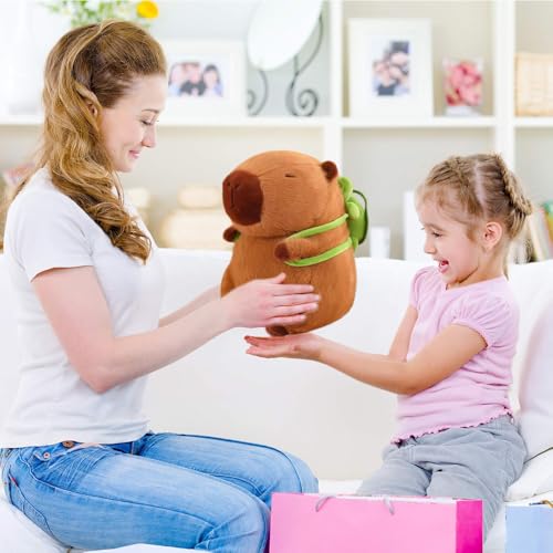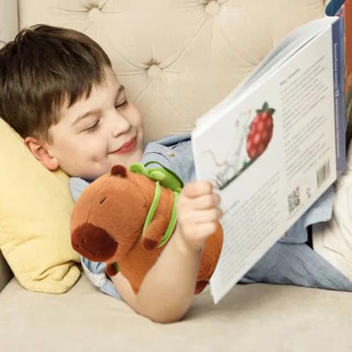 CONTEYEH - عروسة كابيبارا قطيفة بشنطة ظهر على شكل سلحفاة من كونتييه، مخدة حيوانات محشوة ناعمة وقابلة للعناق، لعبة كابيبارا قطيفة لطيفة للأولاد والبنات لعيد الميلاد وديكور للغرفة مقاس 22.9 سم