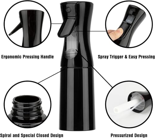 - بخاخ يمكن التحكم فيه وخالي من الفوضى - يساعد على تجنب ترطيب الشعر أو الأسطح بشكل زائد مع توفير تغطية ثابتة للرذاذ.