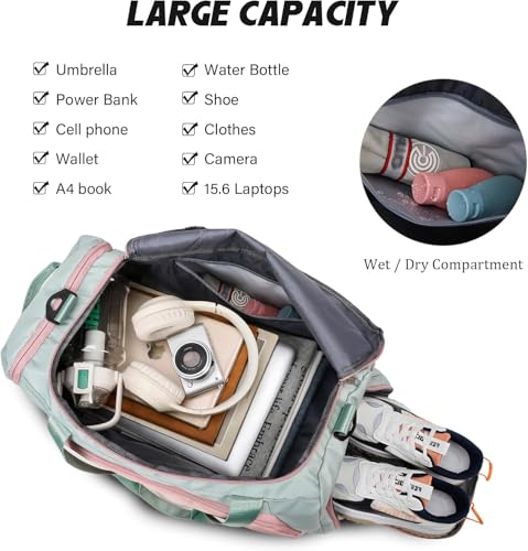 - مثالية للاستخدامات المتعددة: حقيبة رياضية عملية مناسبة للنساء والرجال، مصممة للجيم واللياقة البدنية واليوجا والسباحة ورحلات عطلة نهاية الأسبوع والسفر
