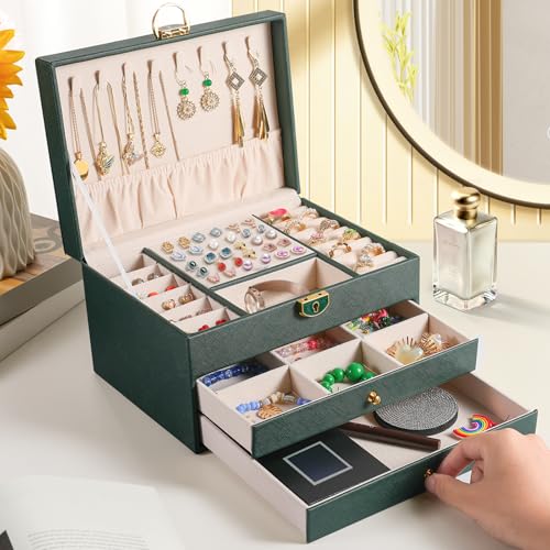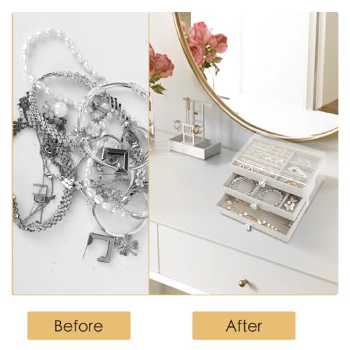 coobest - Jewelry Box, 3 Drawer Jewelry Holder Organizer, Jewelry Boxes & Organizers with Earring Organizer, Jewelry Holder Box, Clear Jewelry Organizer Box for Jewelry Storage, Christmas Gifts for Mom