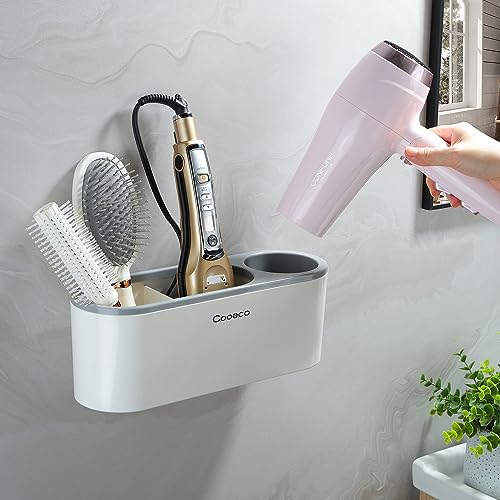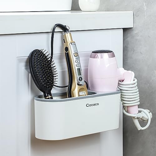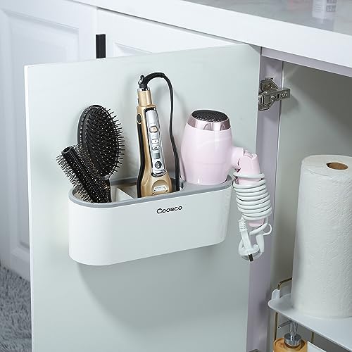 Cooeco - Hair Dryer Holder without Drilling - 3 in 1 Hair Dryer Holder Bathroom Hair Dryer Holder in Cabinet Door, Self-Adhesive Curling Iron Holder for Curling Iron Hair, Straightener Hair, Styling