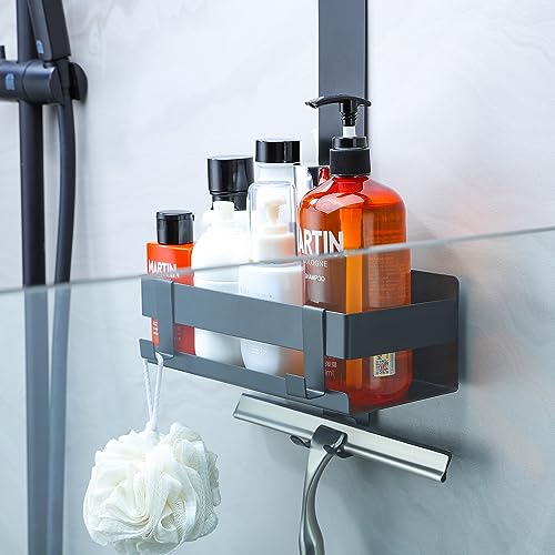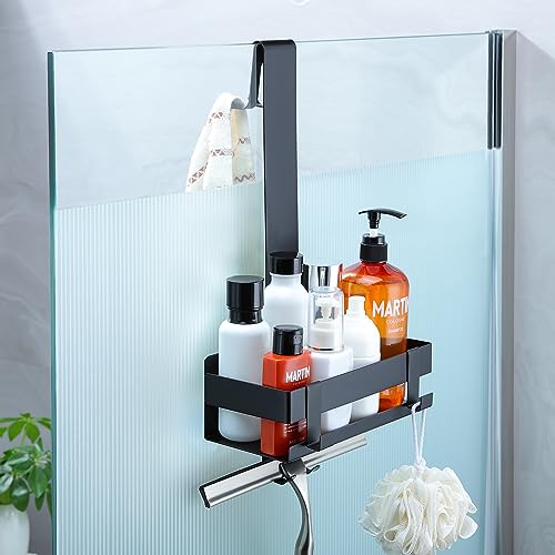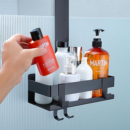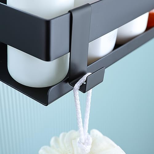 Cooeco - رف دش للتعليق من كويكو اسود - سلة بدون ثقب مع خطافات لجدار الدش الزجاجي