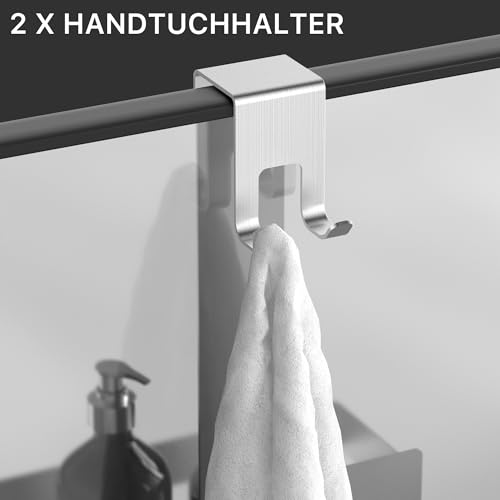 - ◊ Practical 2-in-1 design: shower shelf inside and outside hooks: external hooks towels or bathrobes easy to get after showering; inner hooks for hanging shower sponge/razor, etc.