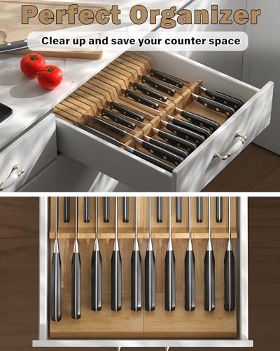 Cook N Home - Cook N Home In-Drawer Knife Block Organizer, 9-Slot Kitchen Knife Cutlery Holder Drawer Storage, Holds up to 9 Knives (Not Included)