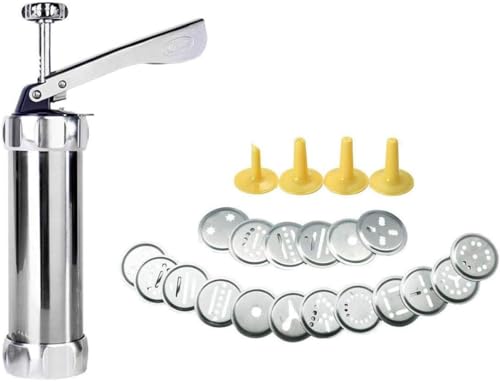 - PREMIUM STAINLESS STEEL COOKIE PRESS – This durable cookie press is made from high-quality stainless steel designed for long-lasting use in everyday baking. The sturdy construction provides strong pressing power so you can easily shape dough into beautiful cookies without bending or breaking. Ideal for making butter biscuits, petit four, homemade cookies, and decorative pastries with consistent professional-looking results every time.