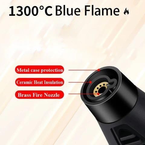 • مجهزة بإشعال بيزو وإشعال إلكتروني أوتوماتيكي بالكامل للاستخدام الآمن والسهل في أي زاوية، تضمن ولاعة الشعلة هذه السلامة أثناء التشغيل.