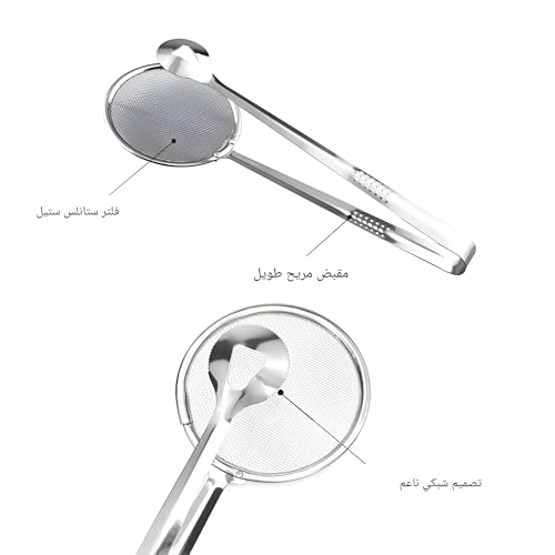 - واحدة من الميزات البارزة لأداة المطبخ هذه هي مقبضها المريح الطويل ، وهو مصمم بذكاء لحماية يديك من الشحم الساخن والزيوت أثناء الطهي. يعزز عنصر التصميم المدروس هذا السلامة من خلال تقليل خطر الحروق ويسمح بتحكم أفضل عند التعامل مع الأطعمة المقلية ، مما يجعل عملية القلي أكثر راحة وممتعة.
