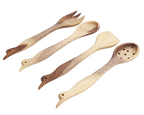 Generic - طقم ملاعق خشبية للطهي مكون من 4 قطع - بيج وبني M-58