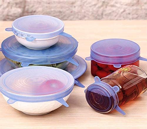 Spaceshoop - Cookware 4 Color Heat Resistant Silicone Stretch Lids Durable Reusable Silicone Food Keeping Sealed Covers LJJCUICAN (Color : Yellow, Size : 6pcs)