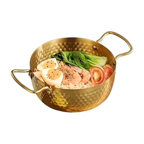 - This stainless steel food and noodle cooking bowl with double handles offers a perfect balance of practicality and elegance, making it a great choice for everyday meals as well as stylish table presentation.