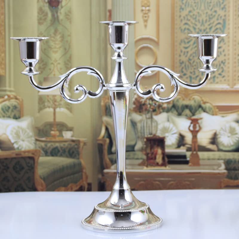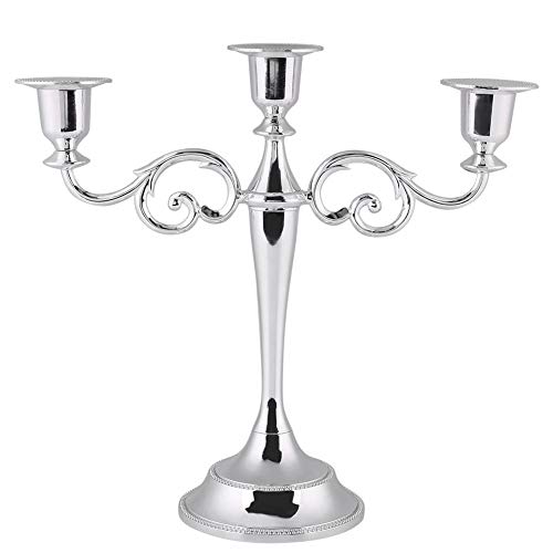 COOLBABY - COOLBABY 3 Stands Candle Holder, Optional Colors 3 Arms Candlestick, Metal Beautiful For Home Bedroom(Silver)