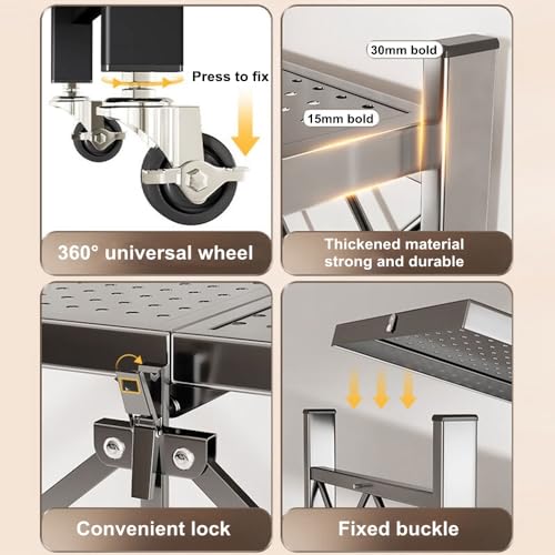 - The metal foldable shelf create more storage space and keep your home clean and orderly, the shelve on wheels is perfect for kitchen, living room, office, garage etc, you can use it to store books, plants, tools, clothes and so on. The mesh racks on both sides can prevent objects from falling.