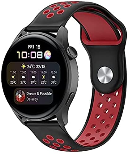CoolCat - CoolCat ClickAE 20MM Sport Silicone Strap/Band for Samsung Galaxy Watch 4, Watch 4 classic, Watch 3 (41mm), Active 3, Active 2 (40mm/44mm), Gear Sport (Black Red)