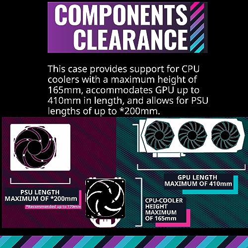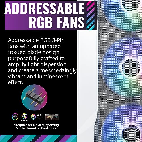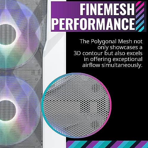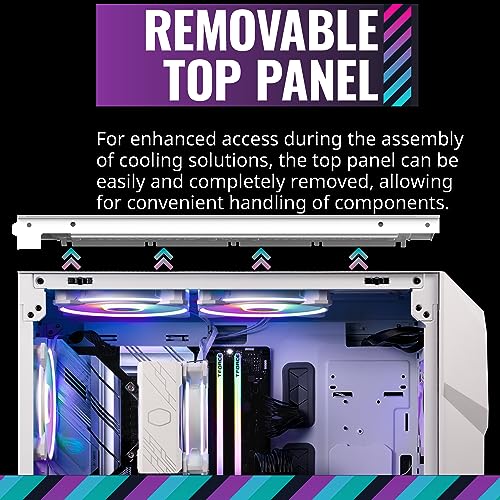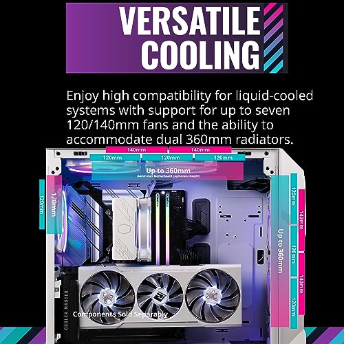- زجاج مقوى كريستالين، مراوح ثلاثية CF120، لوحة أمامية شبكية مضلعة معاد تعريف محور ايه ار جي بي، 3 × فتحات هارد ديسك 3.5 انش، فتحات SSD 4 × 2.5 انش، 2 × USB 3.2 النوع 1 (USB 3.2)، أبيض، لوحة علوية قابلة للإزالة لسهولة التركيب