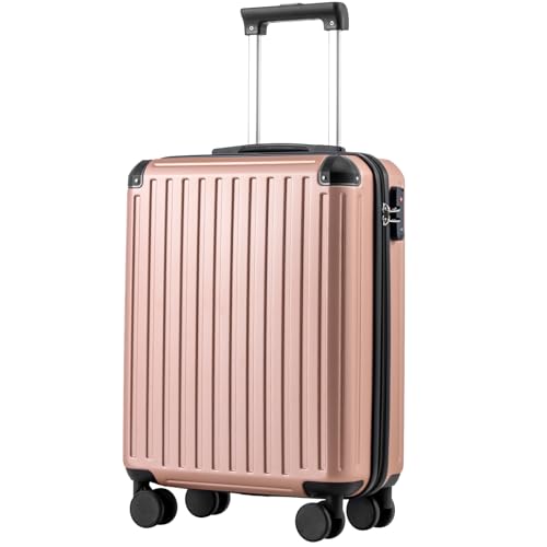 COOLIFE - شنطة سفر صلبة من كوول لايف، مقاس 55 × 40 × 20 سم (مطابقة لمواصفات شنط اليد لطيران ايزي جيت)، خفيفة الوزن ومزودة بقفل معتمد من إدارة أمن المواصلات الأمريكية و4 عجلات مزدوجة، لون وردي ذهبي